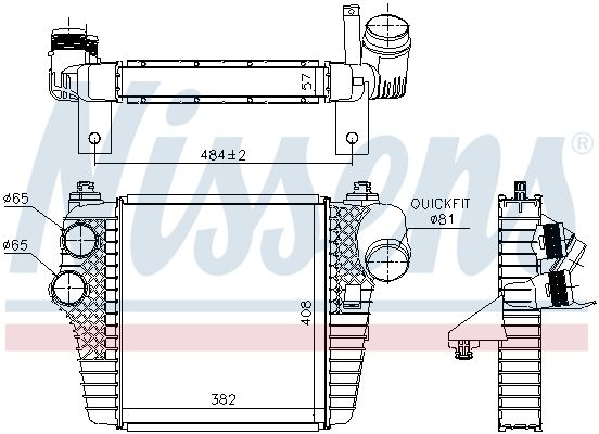 Effizient, kompakt und leistungsstark: Der luftgekühlte Ladeluftkühler mit gelöteten Aluminium-Kühlrippen sorgt für optimale Ladelufttemperaturen. Dank seiner Netzmaße von 408 x 382 x 57 mm ist er ideal für den Austausch bei verschiedenen Fahrzeugmodellen. Aftermarket-Ausführung mit hoher Passgenauigkeit. Kompatibel mit Ford und den OE‑Nummern 5226895, BL3Z6K775B.
